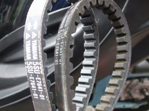 4)Vベルトです。左側が新品です。これも最後はバラバラに切れます。