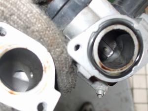 2)エンジン側から見たところです。カーボンが溜まっています。